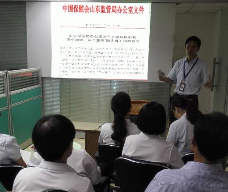 为贯彻落实《山东保监局办公室关于开展保险机构“两个加强、两个遏制”回头看工作的通知》(〔2016〕67号)文件精神,在2015年“两个加强、两个遏制”专项检查工作基础上,继续摸清和查找企业内部管理存在的突出问题和风险隐患,山东智诚保险经纪有限公司第一时间内召开了全体员工动员大会,学习和传达了《通知》文件精神,成立了以总经理庞涛为组长的自查工作领导小组。根据“回头看”专项检查工作重点内容,制定详细工作方案,确保“回头看”各项部署扎实落地。公司要求责任到人,全司动员、各司其职。同时,各部门要相互协调、相互合作,认真督办各部门、机构的自查整改工作,对自查发现的问题要如实反映,不回避、不隐瞒。